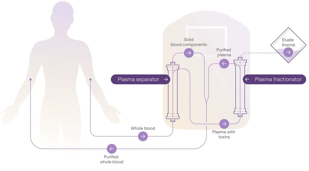The removed toxins and pathogens are collected as a so called ‘Eluat’- the filtered plasma fraction removed during Inuspheresis®, containing inflammatory proteins, autoantibodies, toxins, and other unwanted substances that contribute to disease and dysfunction and are visible at the end of the treatment.